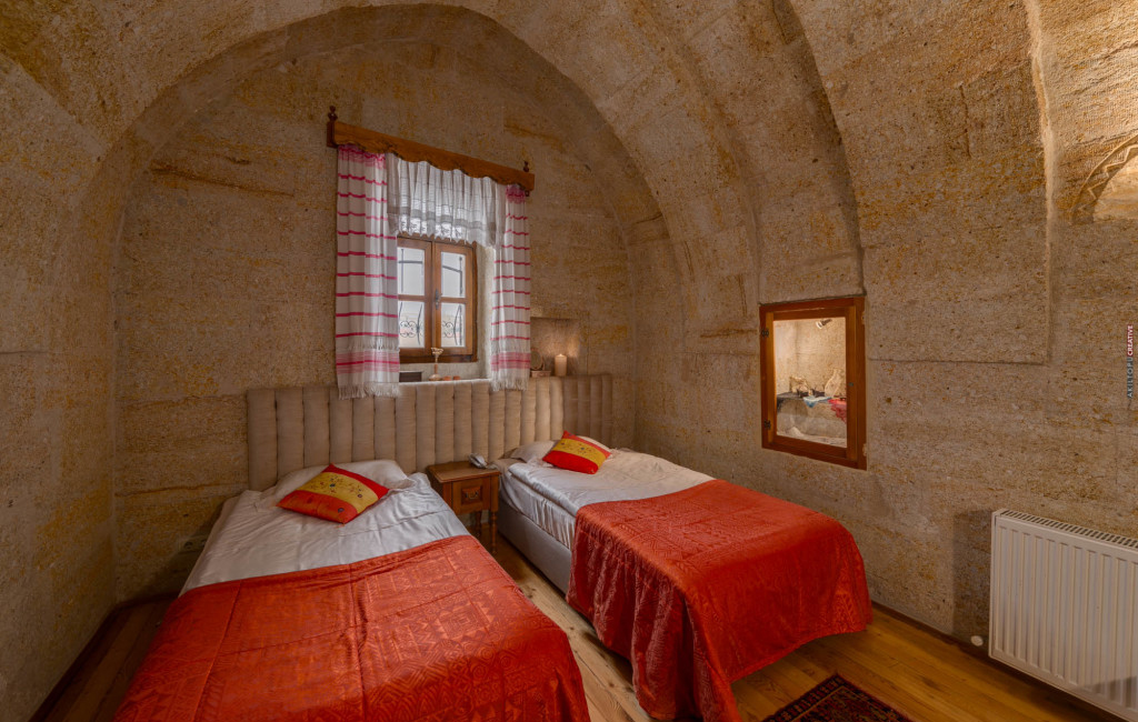 Nuestras habitaciones cueva estándar, la más pequeña de 40 m2 y la más grande de 60 m2, le brindarán la calidez de las chimeneas con toques arquitectónicos otomanos y los jacuzzis de los cuartos de baño le proporcionarán el placer único de bañarse.
